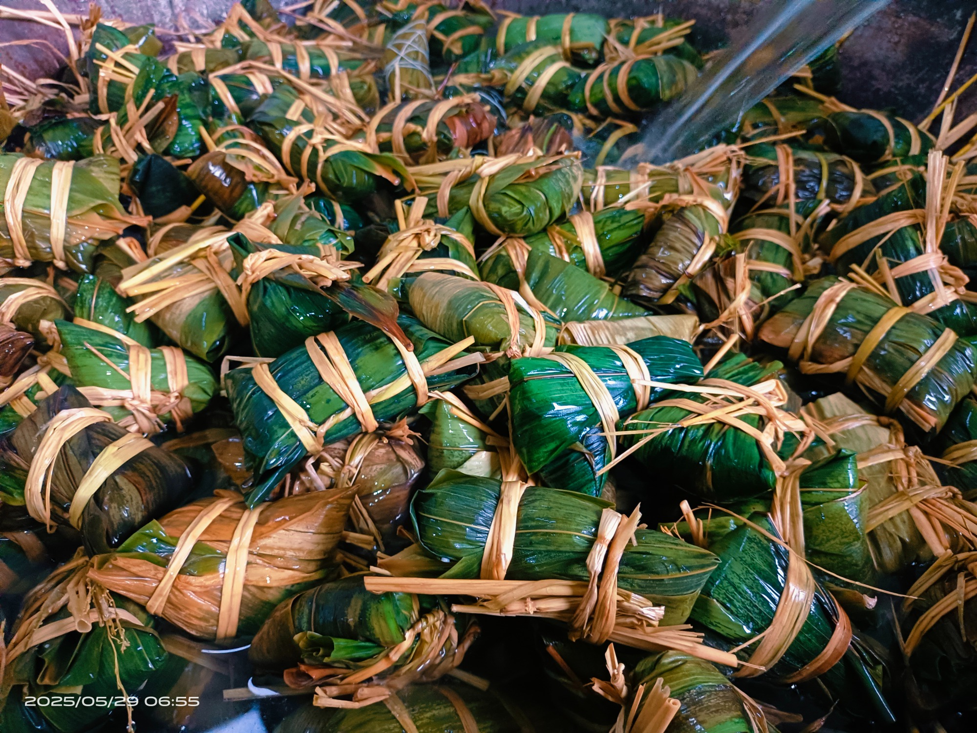 After a lot of hard work, Zongzi with different shapes and bearing everyone's wishes and blessings has finally been "born"! They are neatly stacked in large pots, waiting to be cooked. As the steam rises, the rich aroma of zongzi gradually permeates the entire space, evoking everyone's longing for home and anticipation for delicious holiday food.