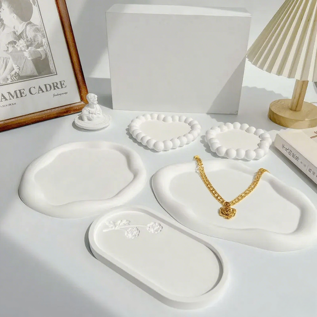 FADELI 2025 New Luxury White Jewelry Display Plate Earring Tray Irregular Shape Round Photography Props