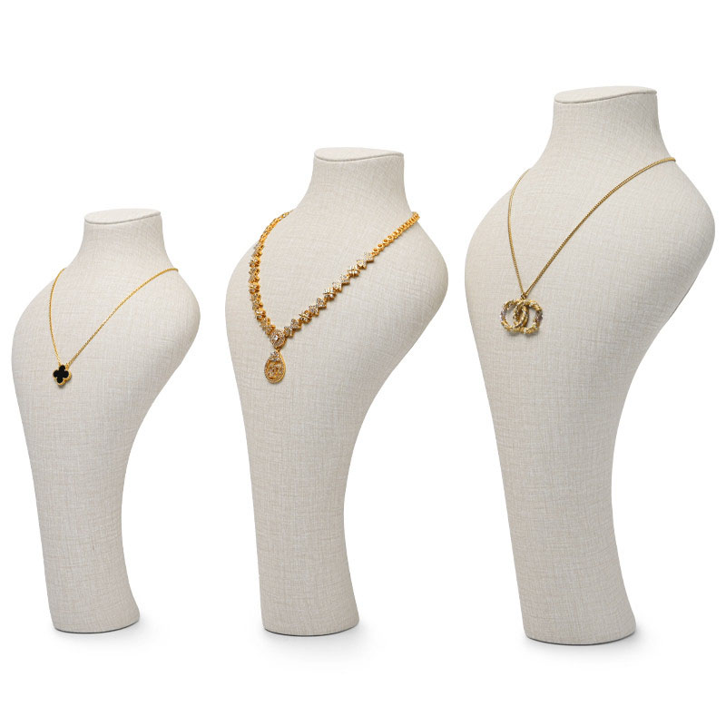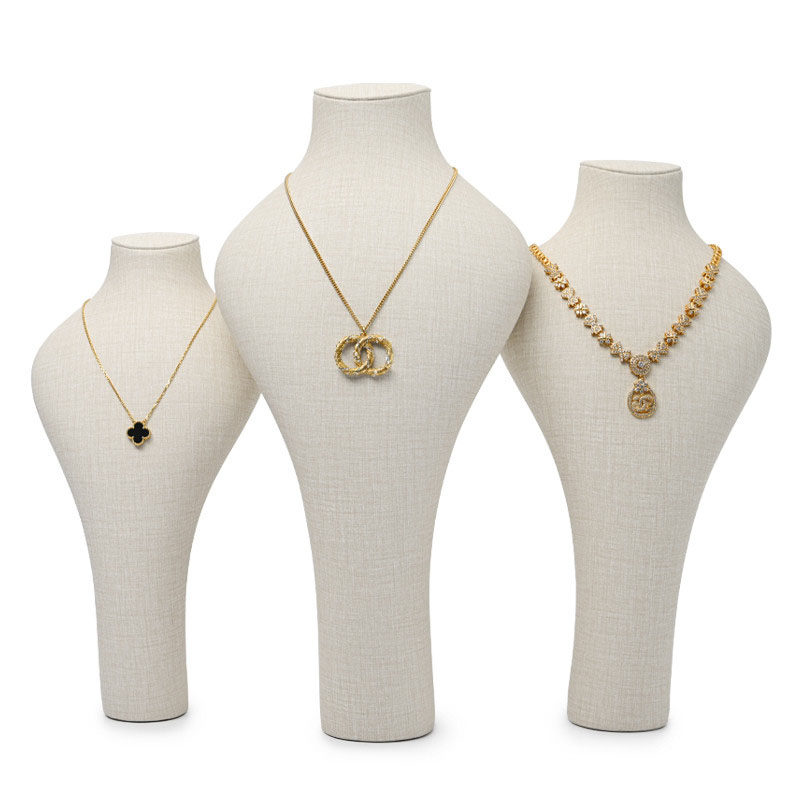 FADELI Custom New Creamy White PU Leather Jewelry Display Pendant Necklace Mannequins Elegant Shopwindow Jewelry Display Stand