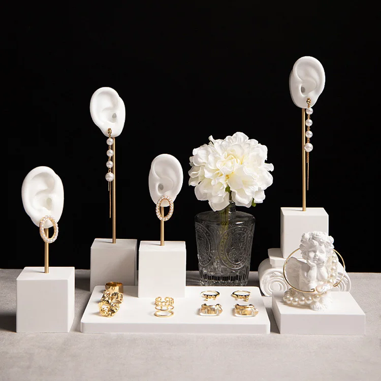 FADELI Ear Shape Jewelry Display Stand Silicone Human Ear Model Jewelry Display Plaster Base Earring Display Holder