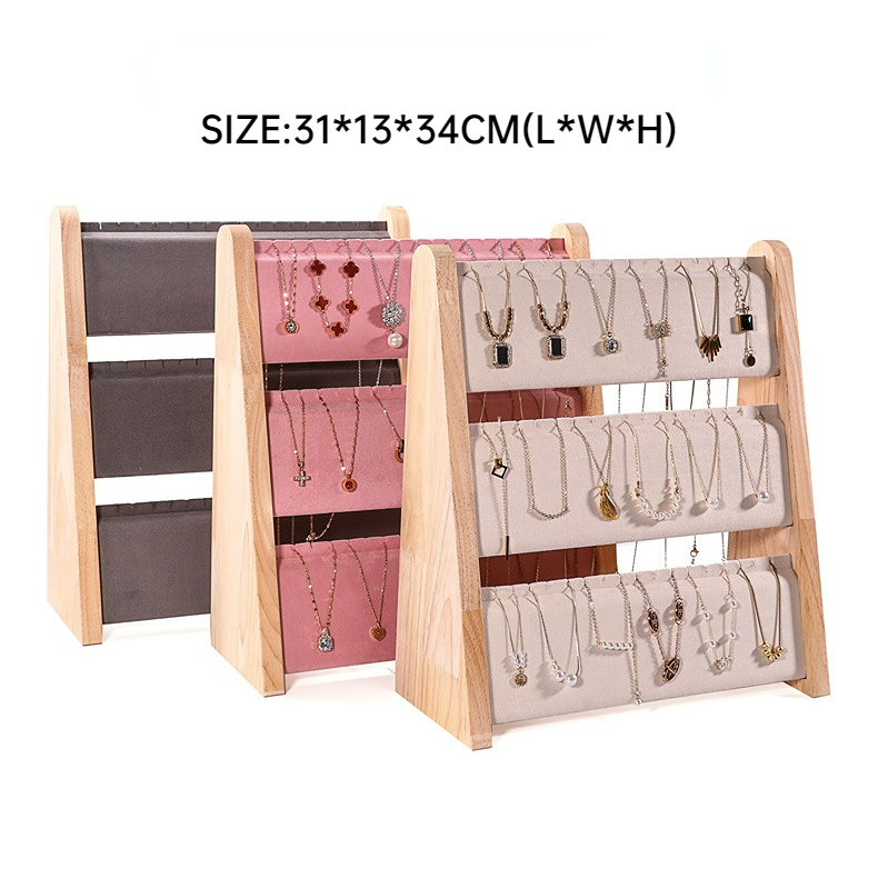 • FADELI Factory-customized Three-Layer Solid Wood Necklaces Bracelets Jewelry Display Stand Jewelry Display Props