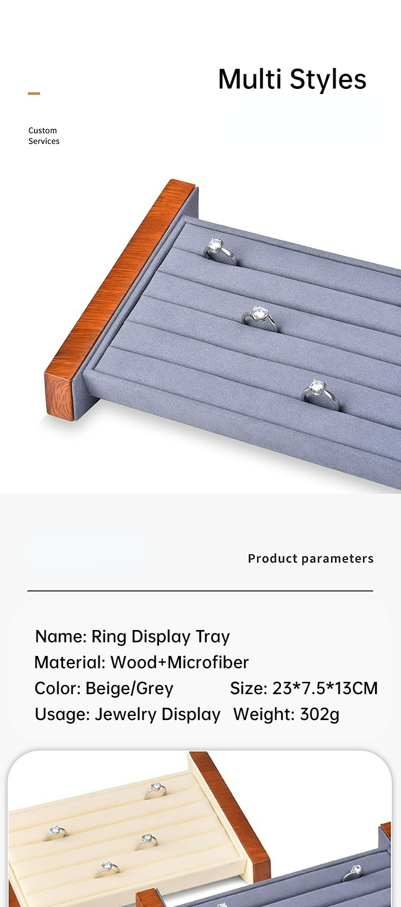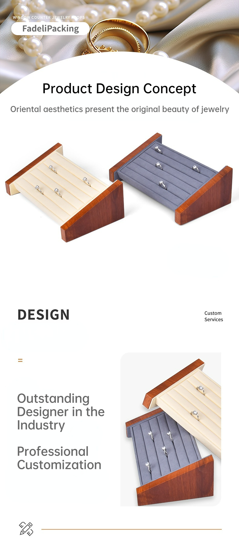 FADELI Factory Customized Wooden Jewelry Display Stand Jewelry Ring Display Holder Rack Beige Gray