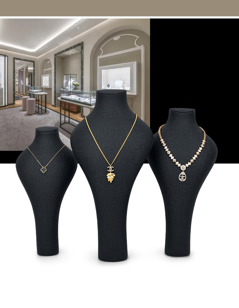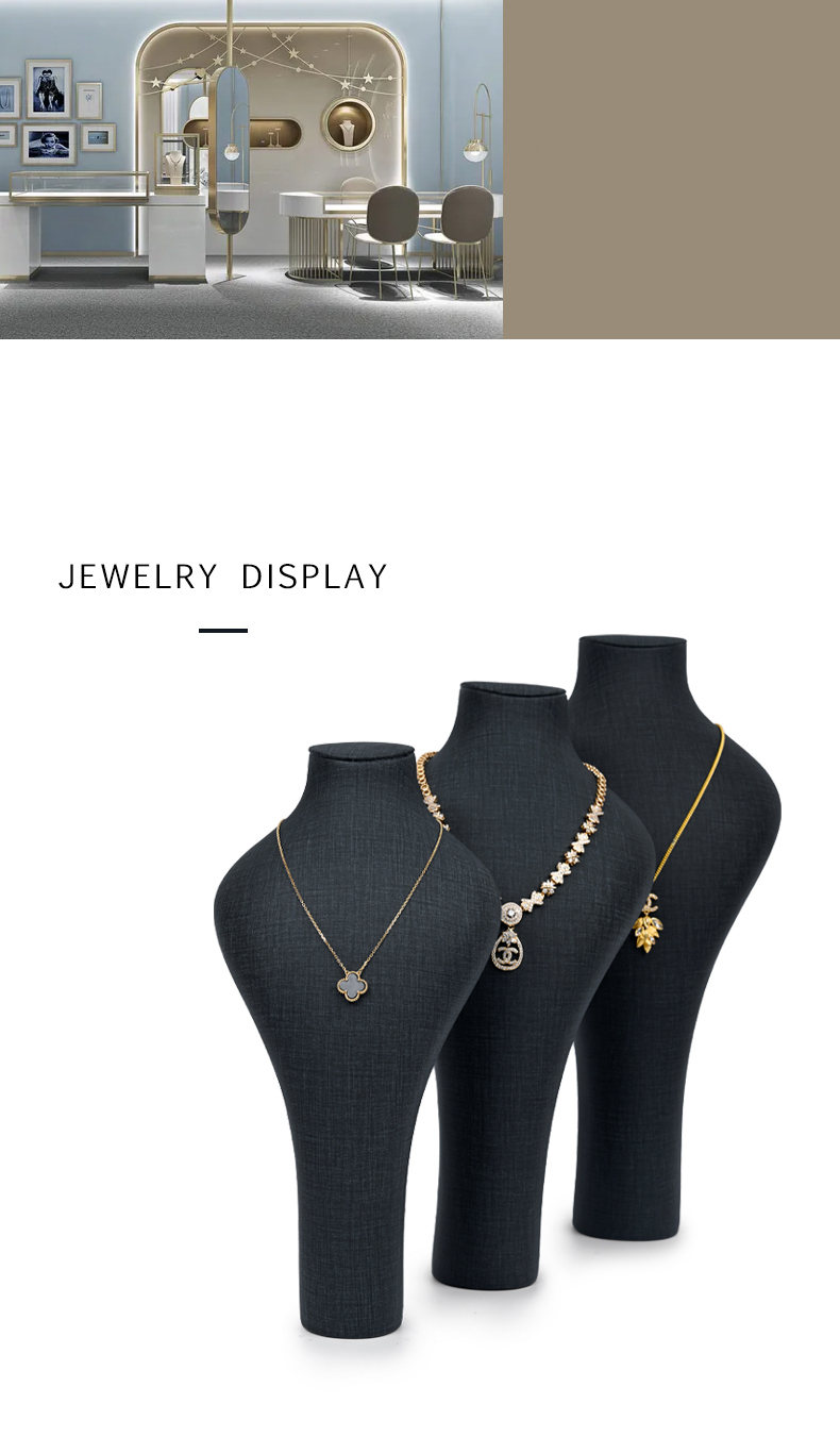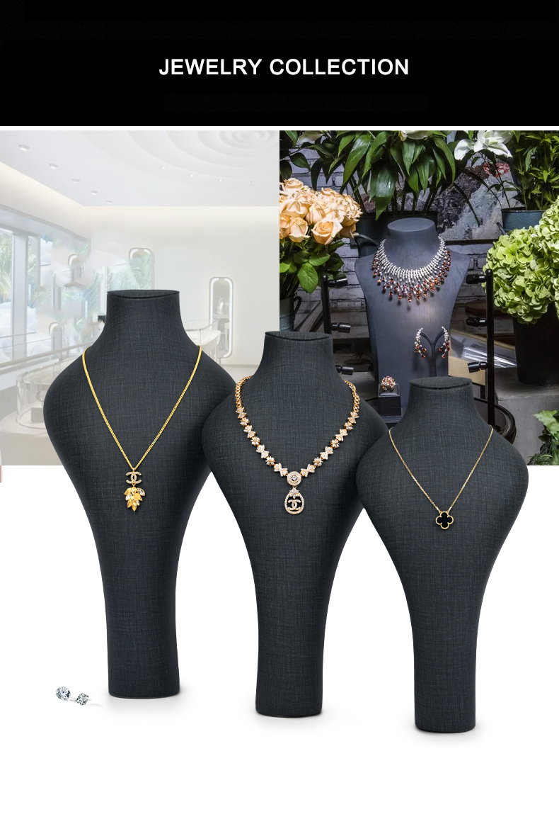 FADELI Factory Wholesale Custom New Dark Grey PU Leather Jewelry Displays Stand Pendant Display Necklace Bust