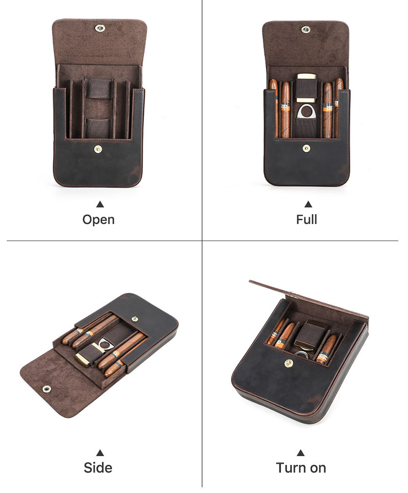 • FADELI Genuine Leather Cigar Travel Bag Cigars Humidor Box Portable Cigar Case 4 Slot Custom Logo Wholesale