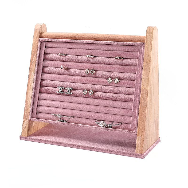 Fadeli Large Capacity Jewelry Display Rack Ring Earring Display Stand Solid Wood Jewelry Display Stand