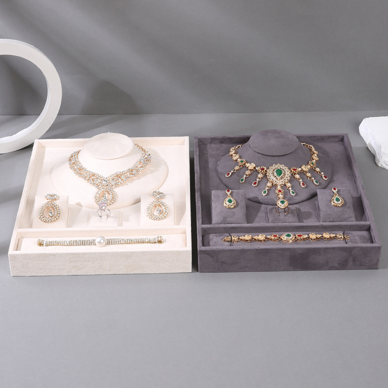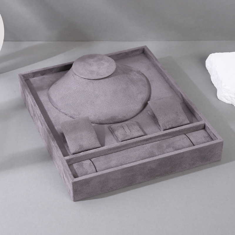 FADELI Luxury Unique Cream Gray Velvet Jewelry Presentation Tray Stackable Ring Earrings Necklace Bracelet Jewelry Storage Display Tray