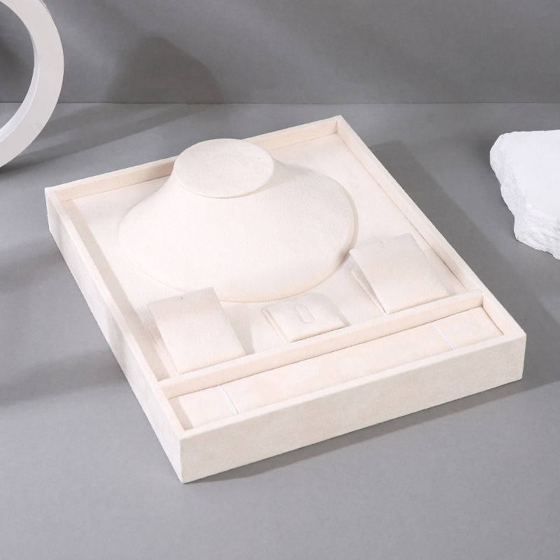• FADELI Luxury Unique Cream Gray Velvet Jewelry Presentation Tray Stackable Ring Earrings Necklace Bracelet Jewelry Storage Display Tray