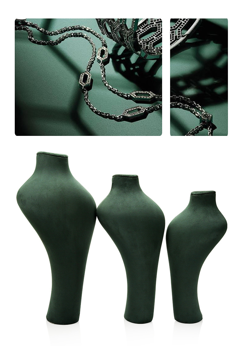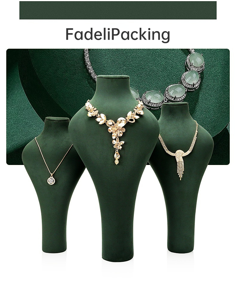 FADELI New Arrival High-end PU Velvet Microfiber Jewelry Display Props Necklace Display Stand Dark Green