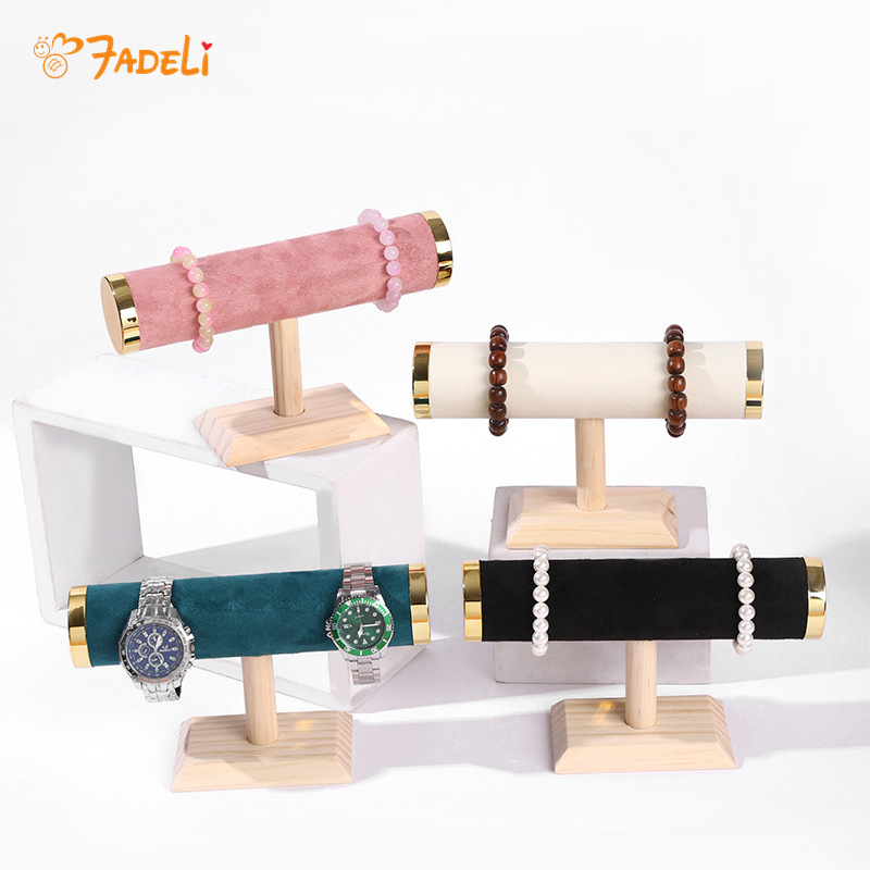 FADELI Retail Hot Sale T- Bar Solid Wooden Velvet Bracelet Bangle Jewelry Organizer Stand Jewelry Display
