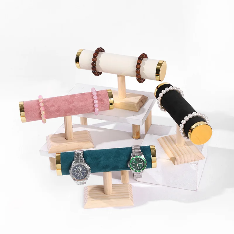 FADELI Retail Hot Sale T- Bar Solid Wooden Velvet Bracelet Bangle Jewelry Organizer Stand Jewelry Display
