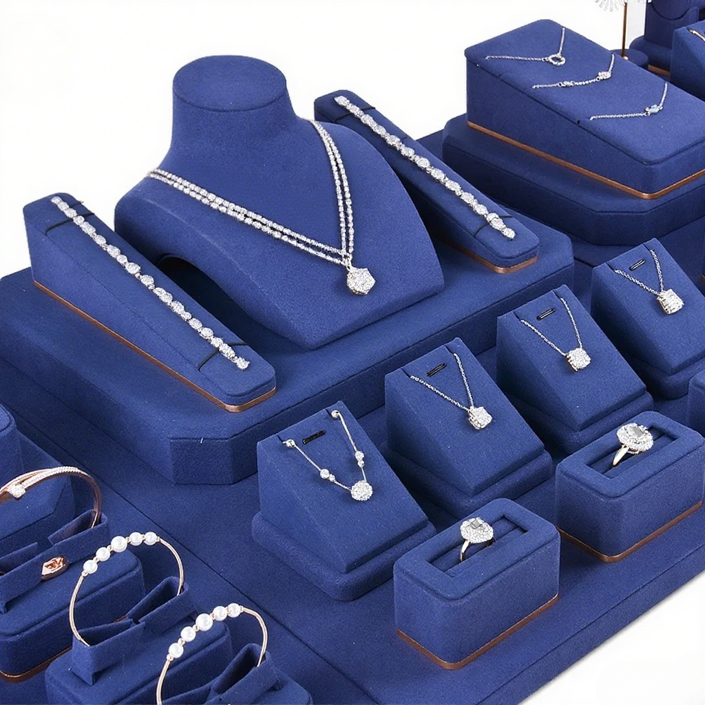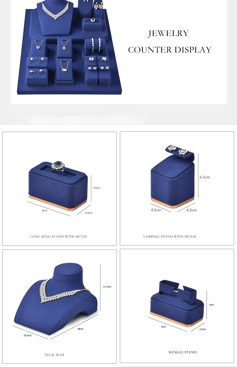 FADELI Wholesale Blue Microfiber Jewelry Earring Display Stands Necklace Display Jewellery Display for Counter