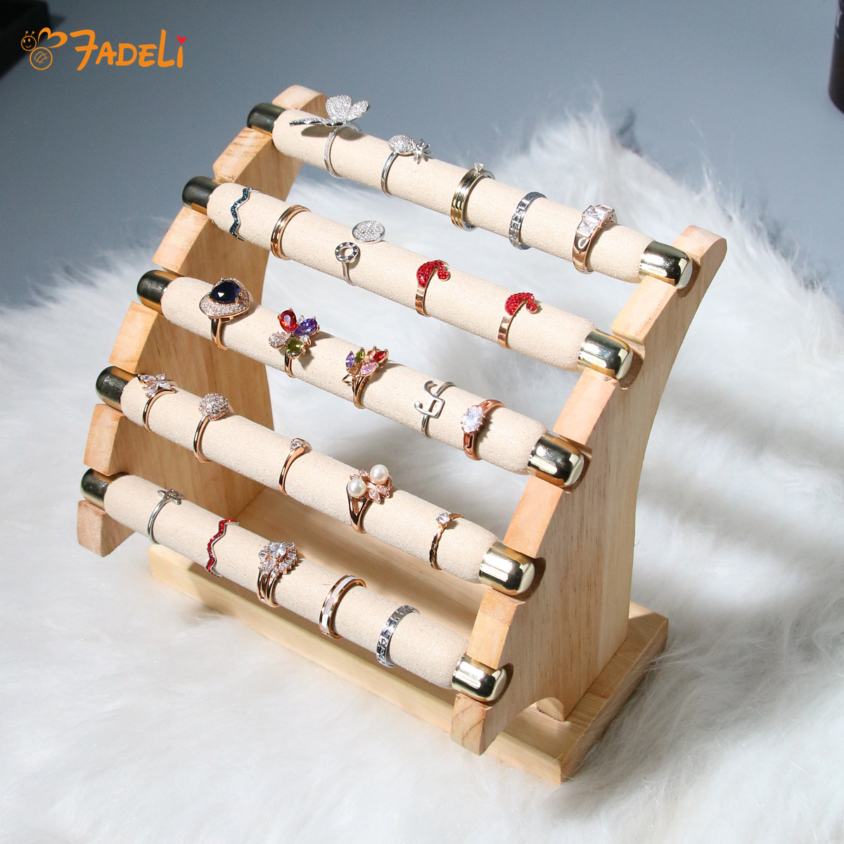 • Luxury Stock Removable Engagement Solid Wood Microfiber 5 Layer T-Bar Jewelry Ring Organizer Holder Jewelry Storage Display
