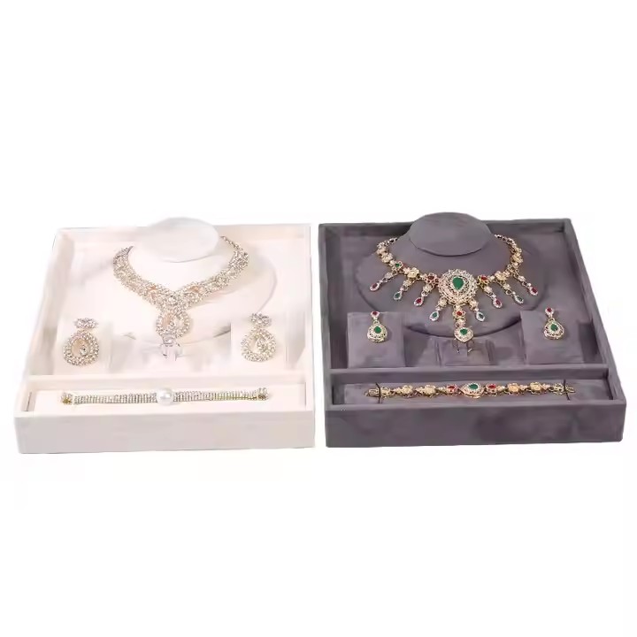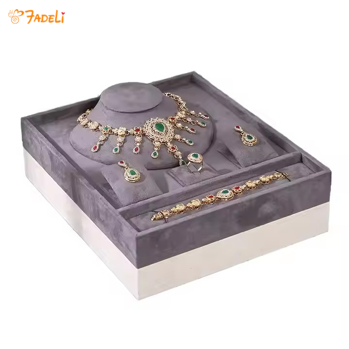 Luxury Unique Cream Gray Velvet Jewelry Presentation Tray Stackable Ring Earrings Necklace Bracelet Jewelry Storage Display Tray