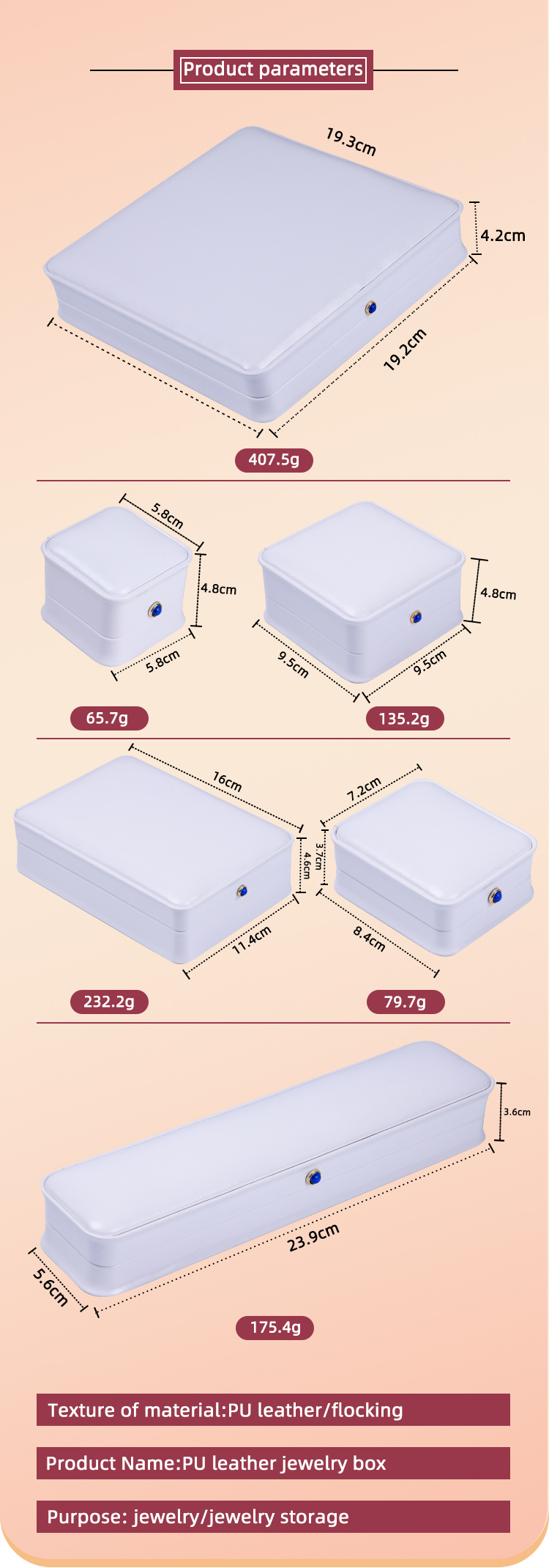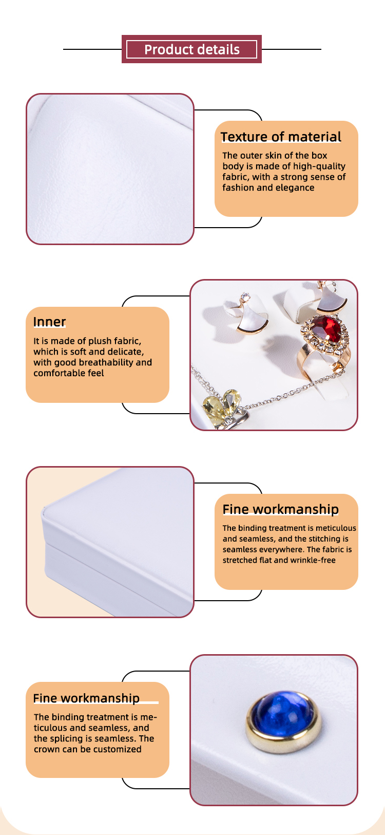 Essential details Brand Name: FADELI Place of Origin: Guangxi, China Model Number: FDL58651 Jewelry Boxes Material: Pu Leather Name: ring box Material: Pu leather Size: 100*105*47mm Color: Customized Color Logo: Custom Logo MOQ: 350pcs