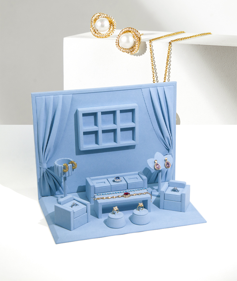 Personalized Custom Jewelry Set Display Prop Ultrafine Fiber Ring Stand Luxury Jewelry Display Set