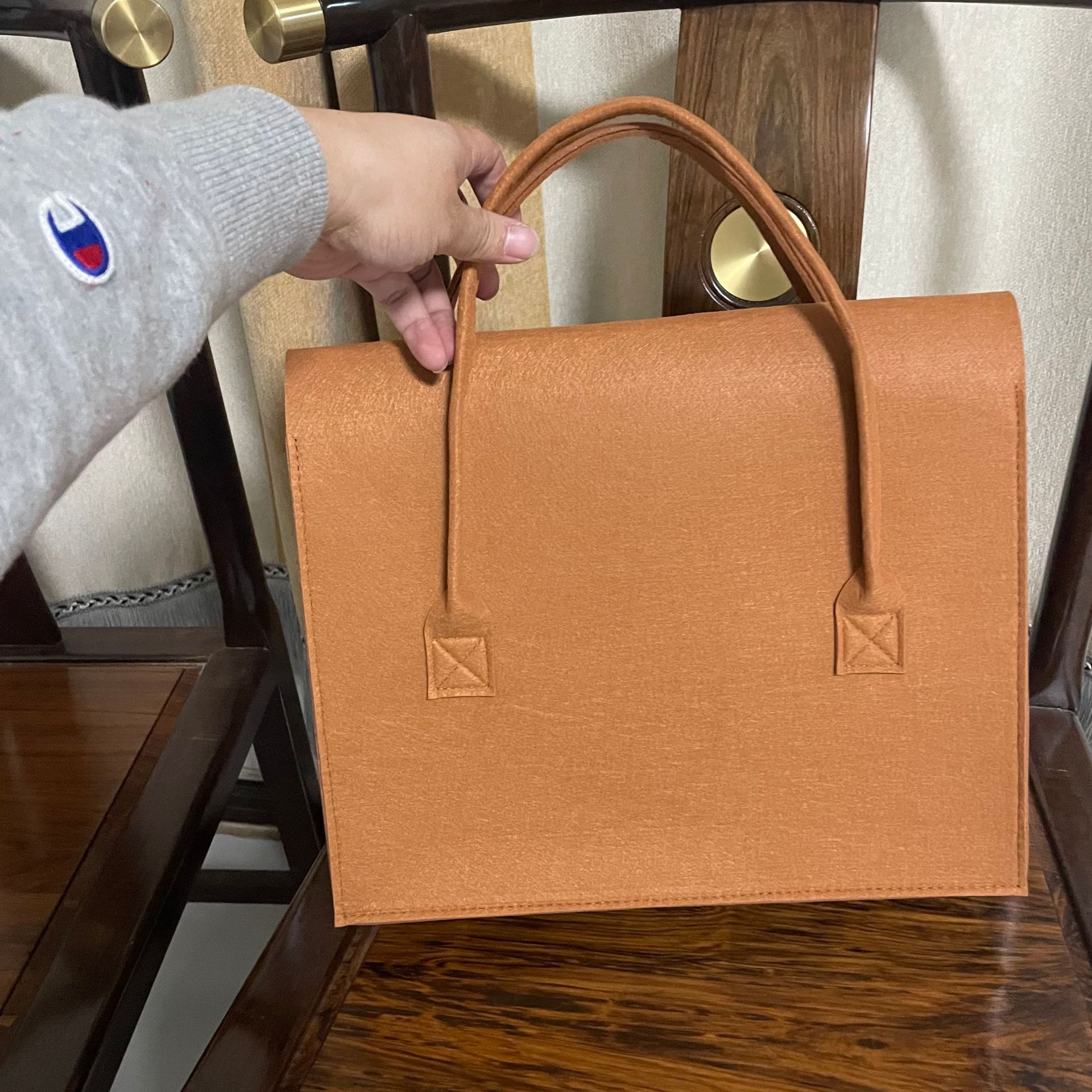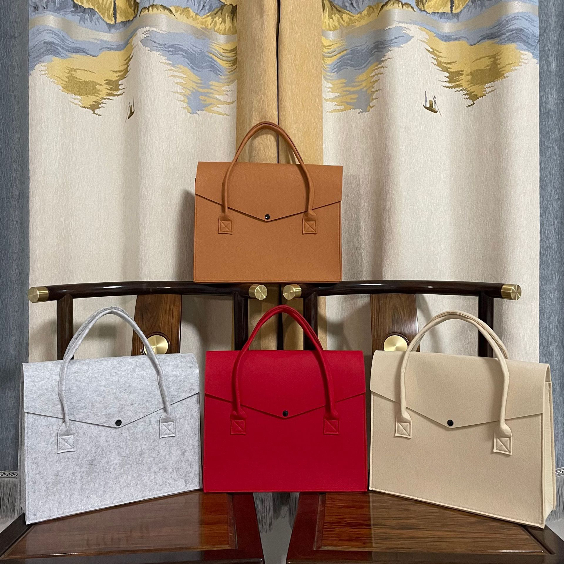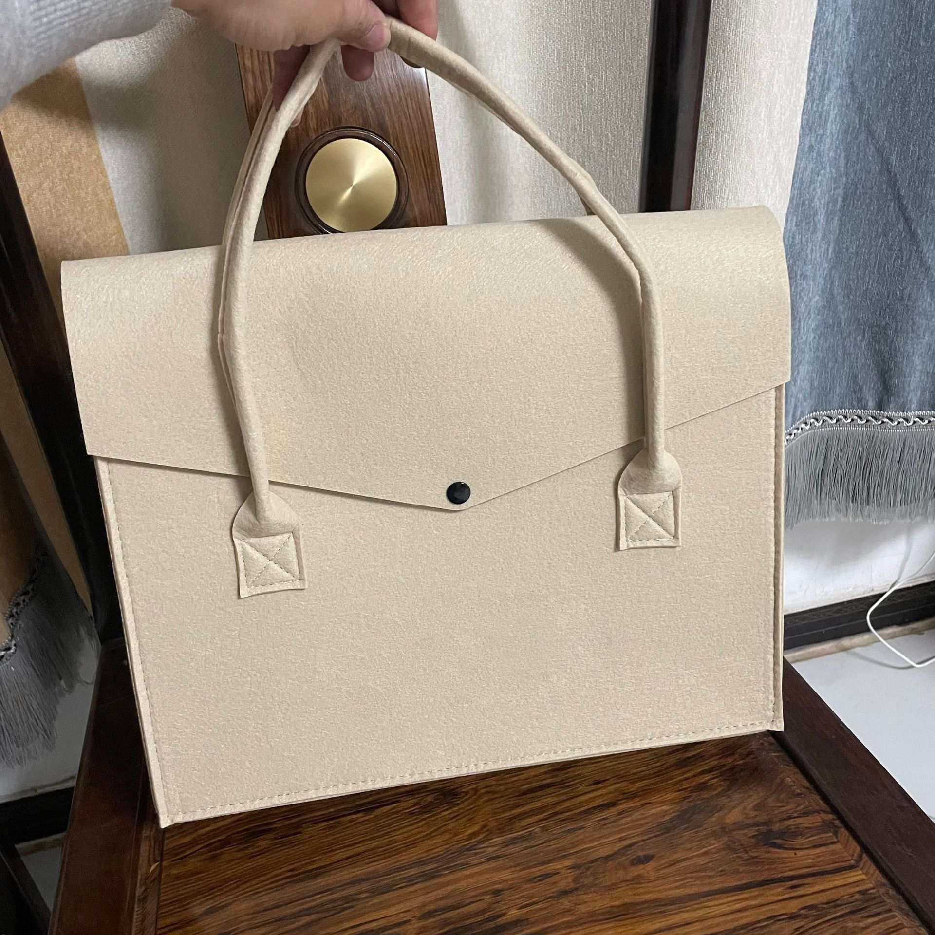 Essential details Pattern Type: Other Closure Type: Hasp Shape: Casual Tote Lining Material: Felt Main Material: Felt Style: Fashion Decoration: Button Gender: Women Place of Origin: Guangxi, China Brand Name: Liming Model Number: LM
