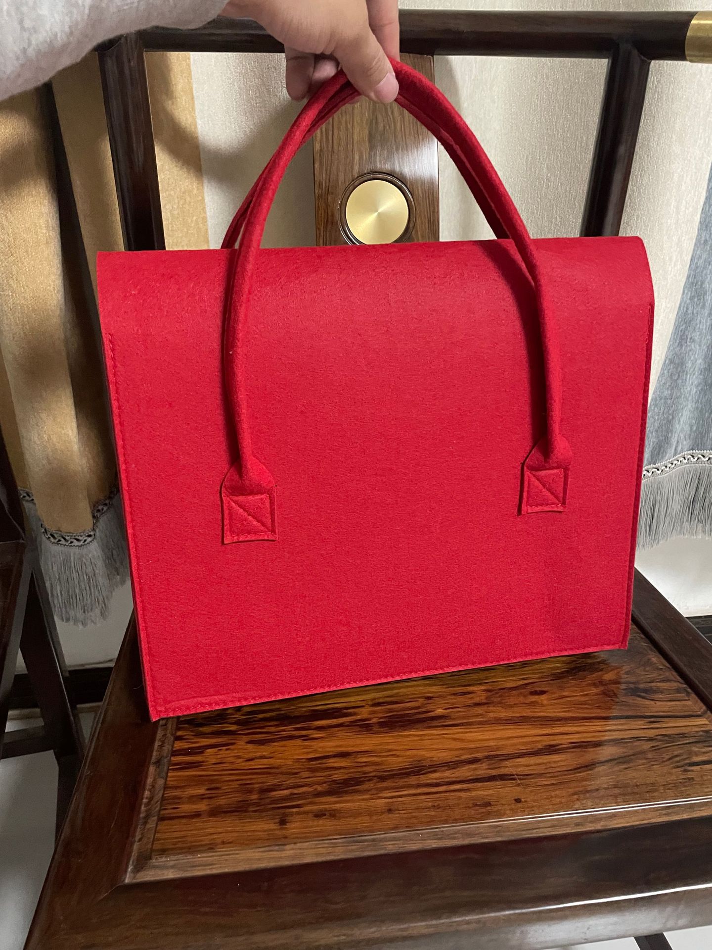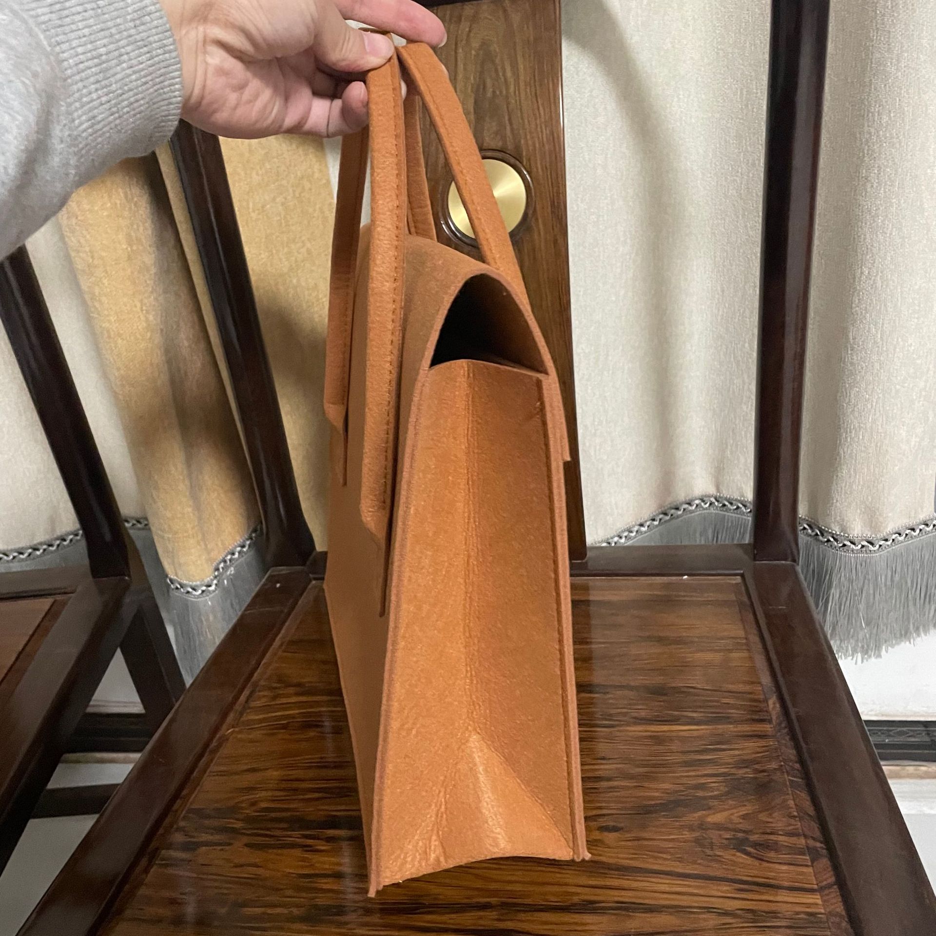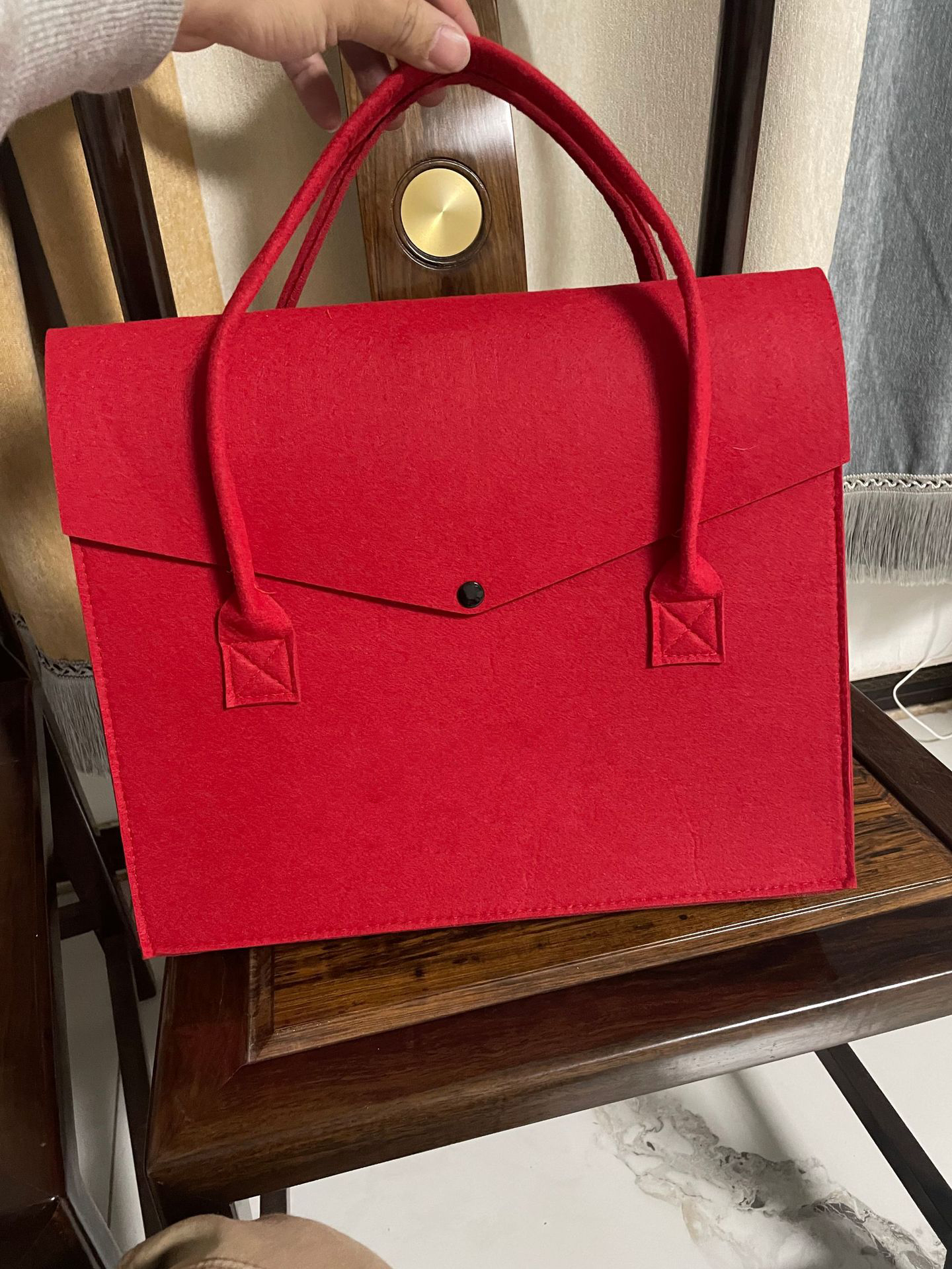 Essential details Pattern Type: Other Closure Type: Hasp Shape: Casual Tote Lining Material: Felt Main Material: Felt Style: Fashion Decoration: Button Gender: Women Place of Origin: Guangxi, China Brand Name: Liming Model Number: LM