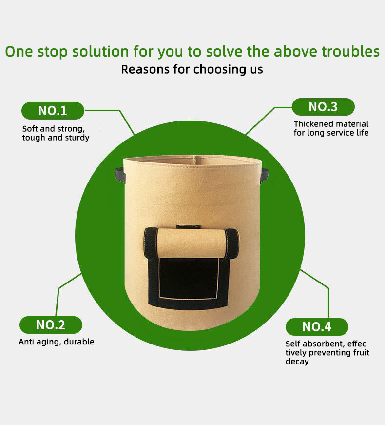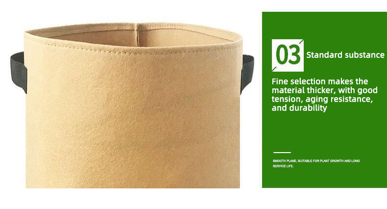 Essential details Type: Grow Bags Place of Origin: Guangxi, China Brand Name: Liming Model Number: LM-019 Material: felt capacity: 15L Product Name: Felt Grow Bag Usage: Plant Growth Color: Customized Color MOQ: 100pcs